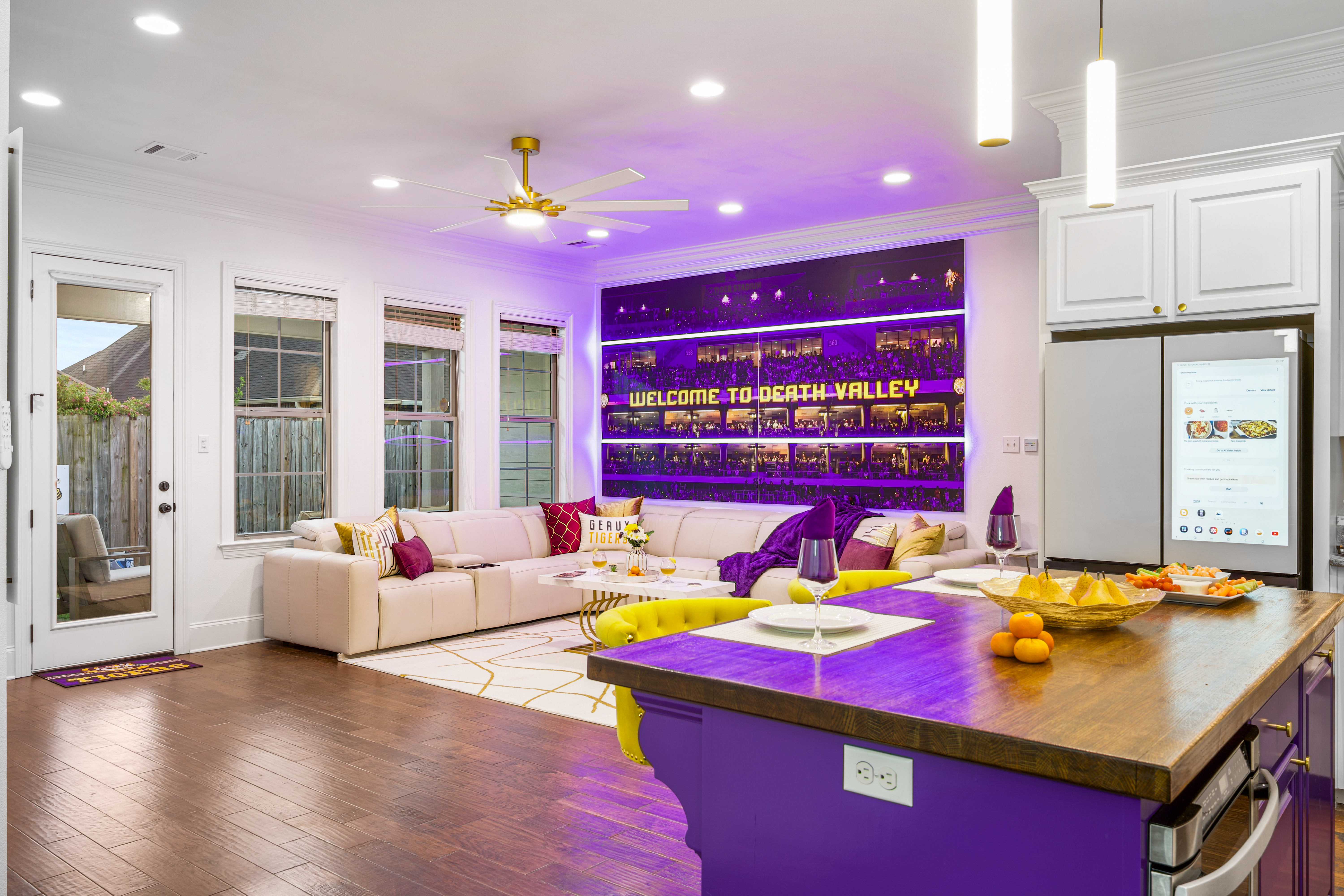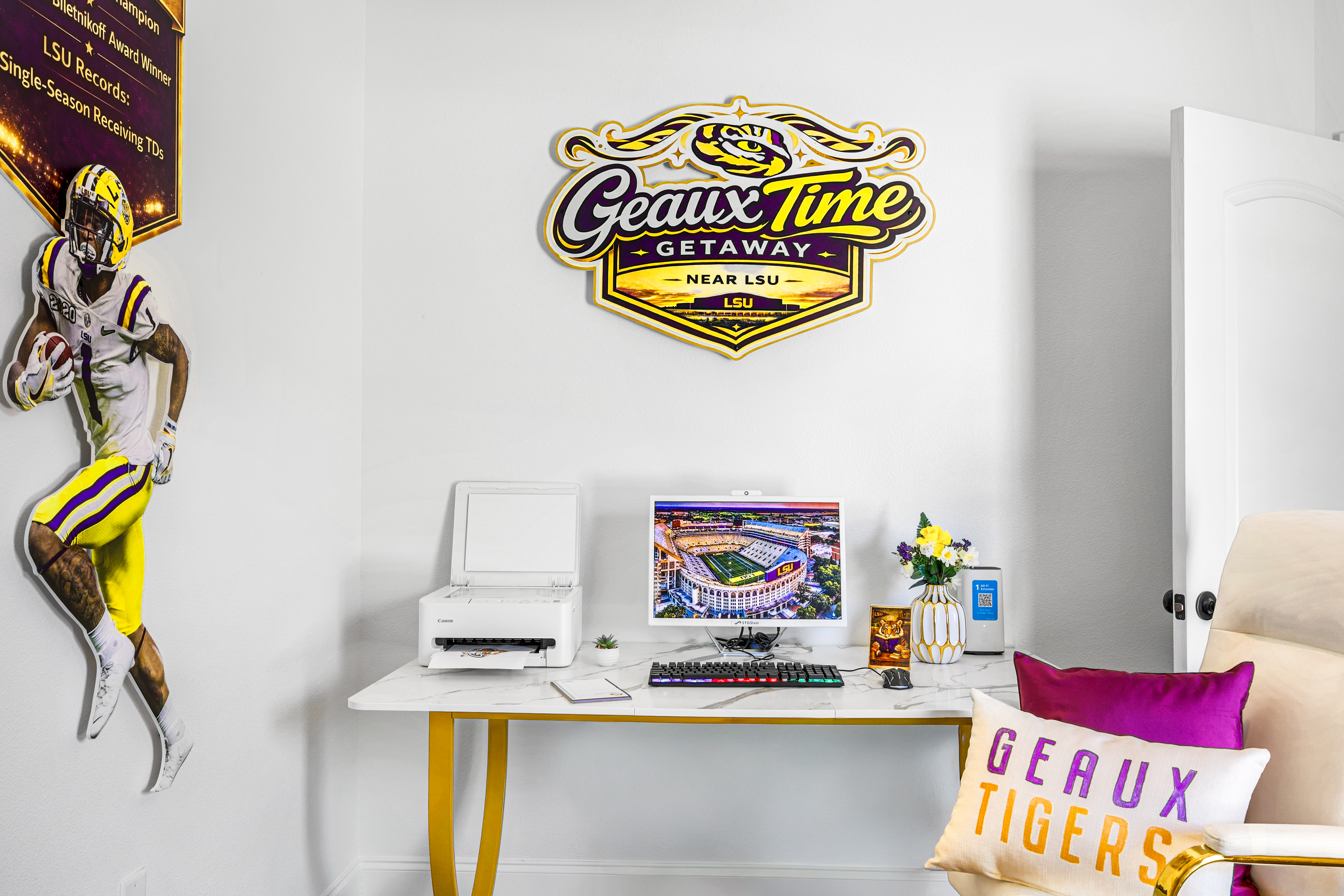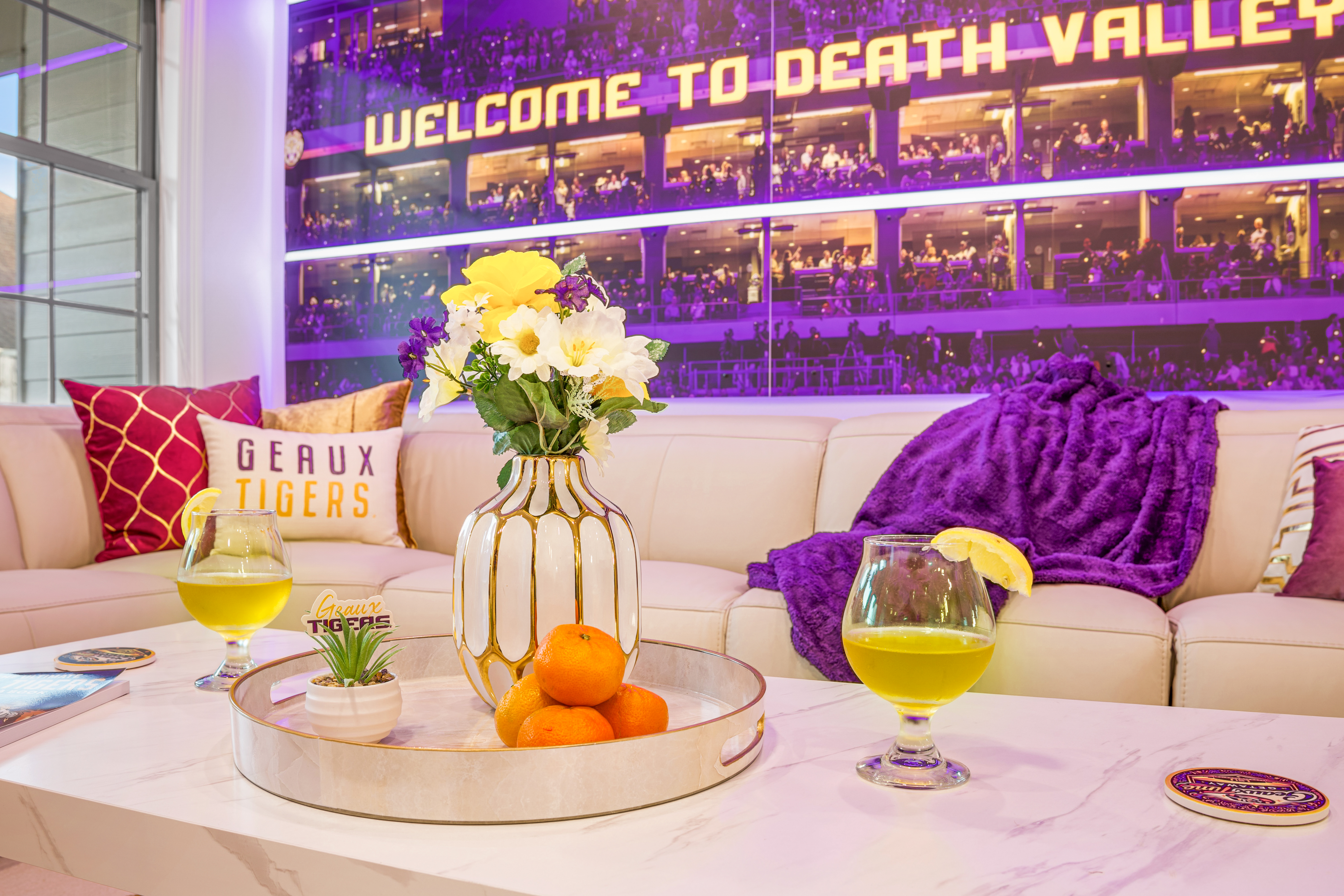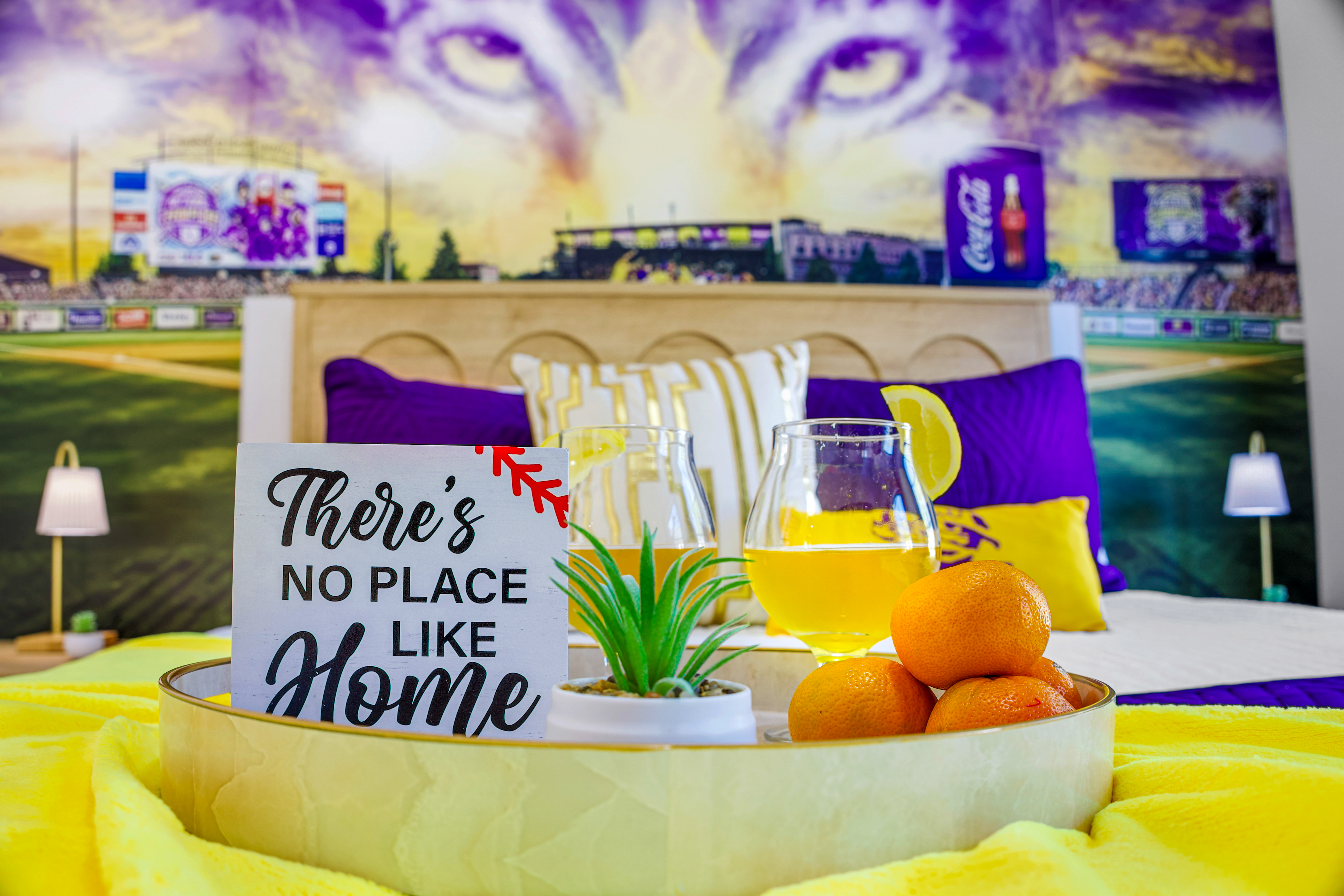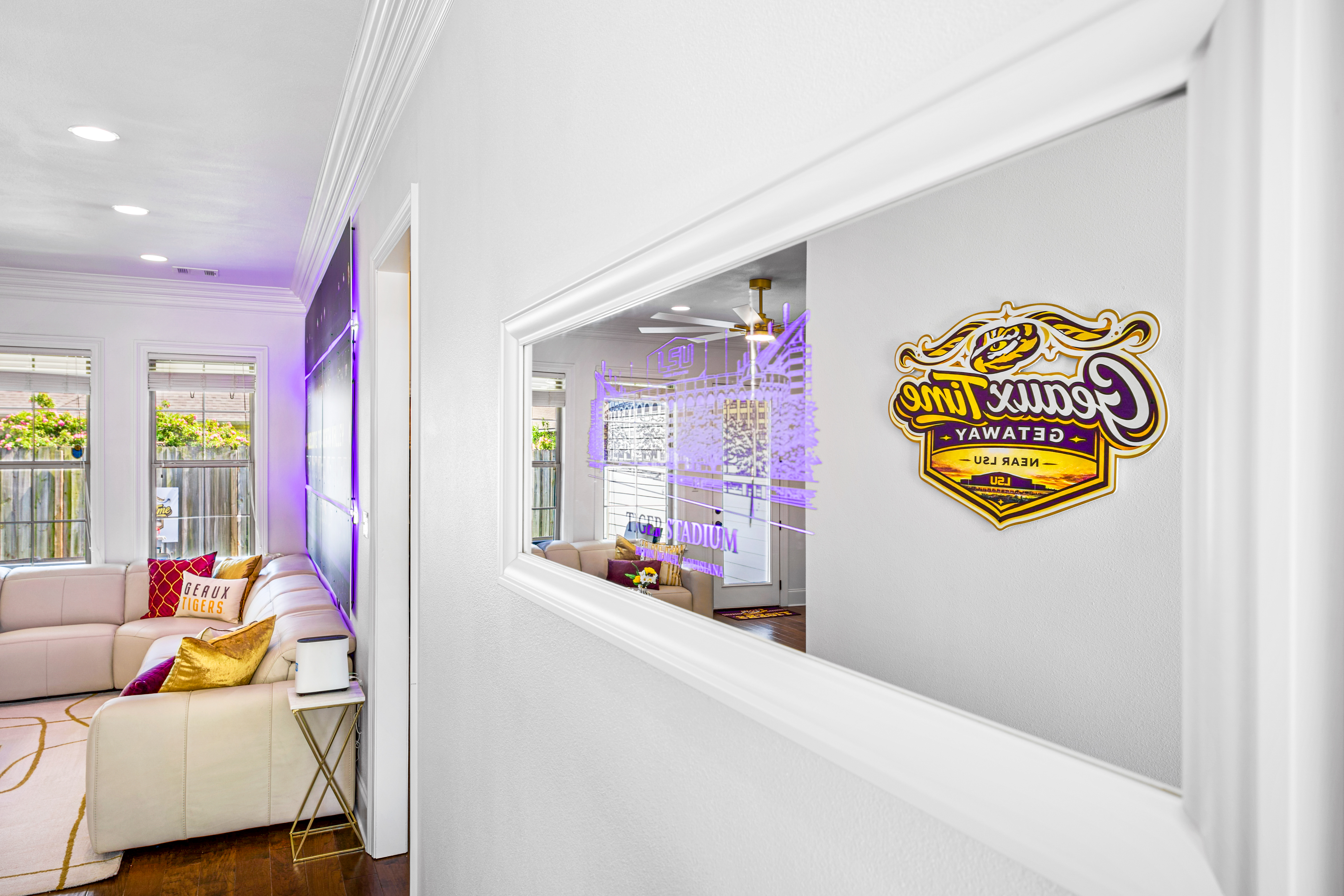 Every bedroom is uniquely LSU-inspired, giving each guest their own Tiger territory. From bold purple and gold accents to custom details that celebrate Baton Rouge spirit, this home fully immerses you to say Geaux Tigers!
