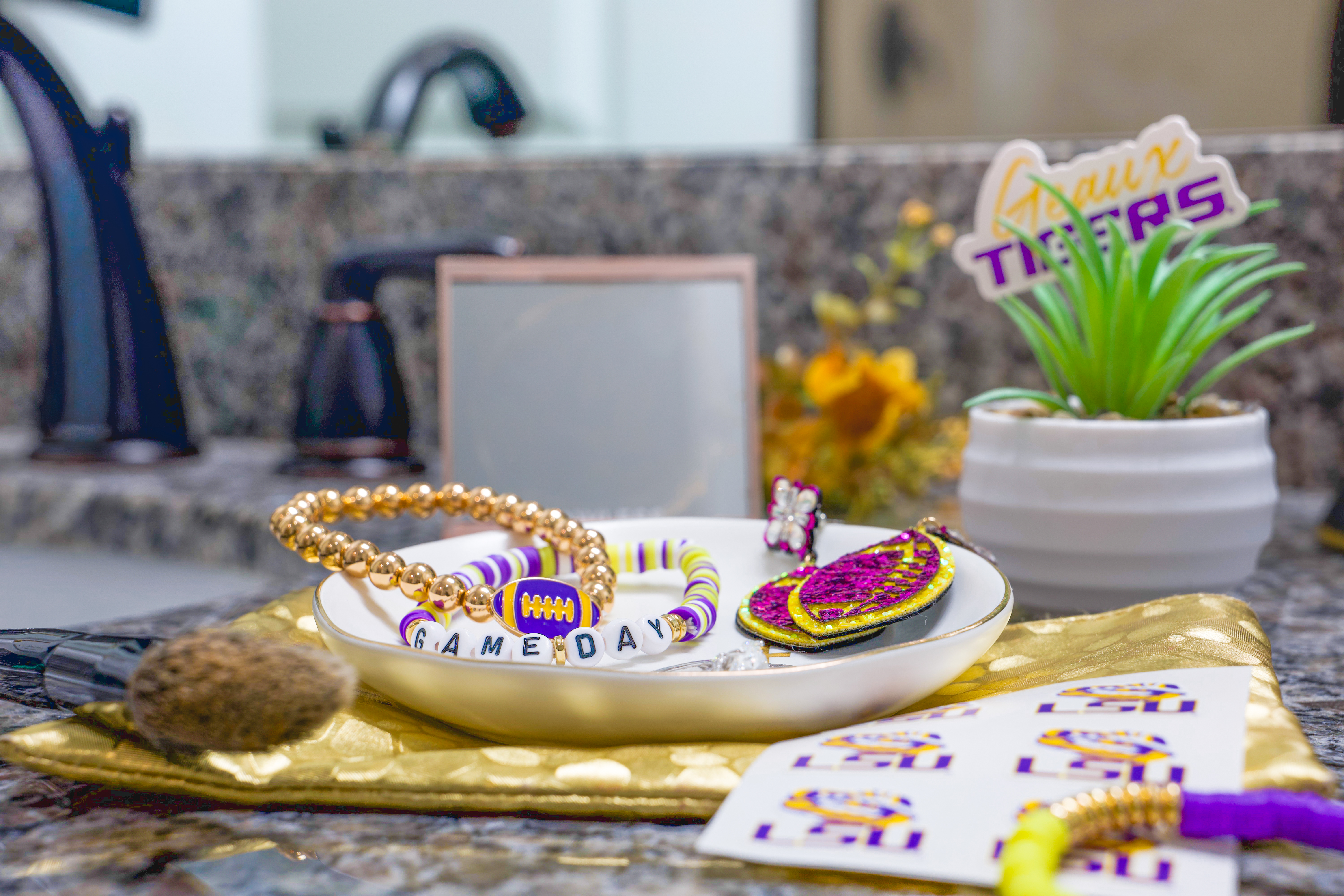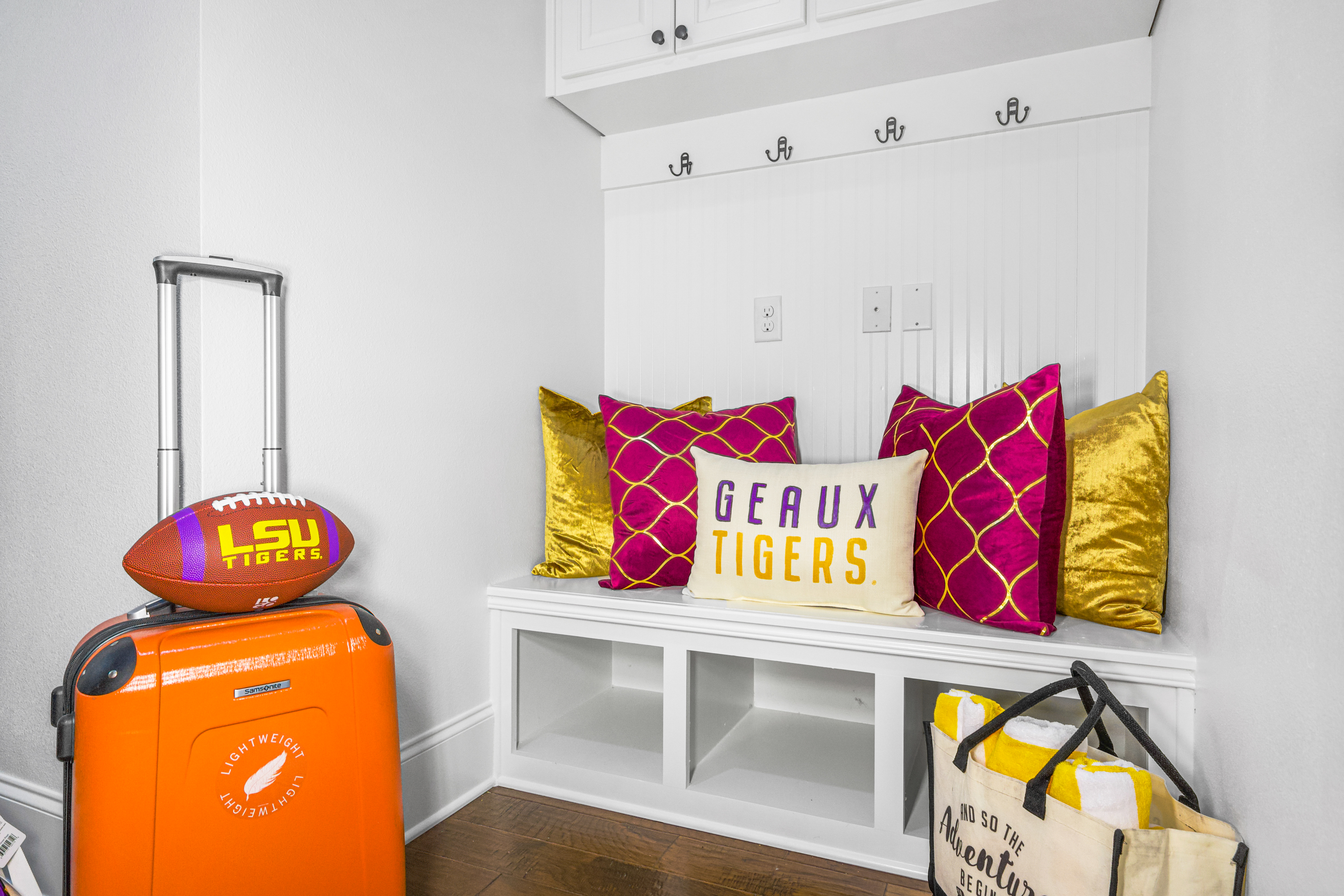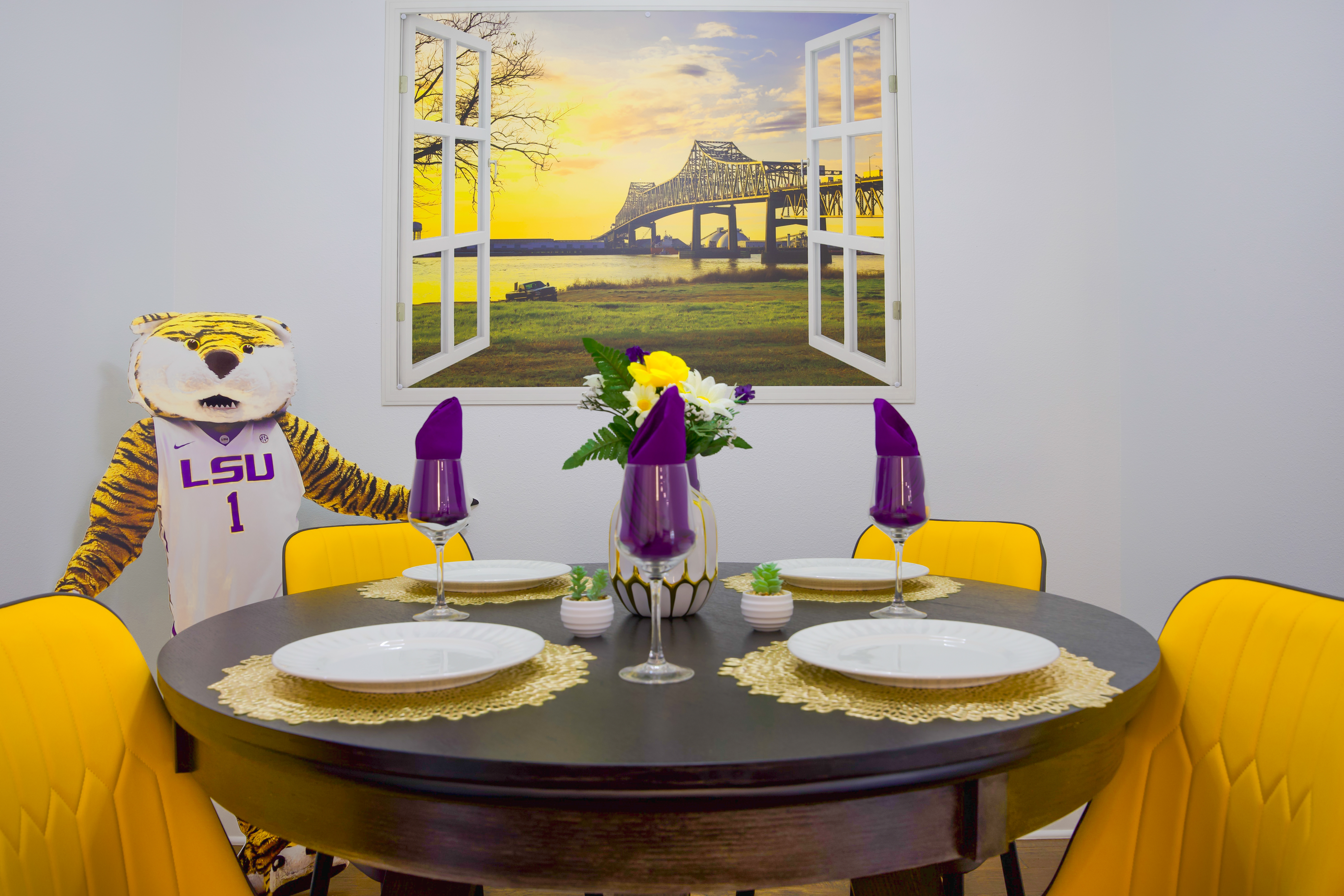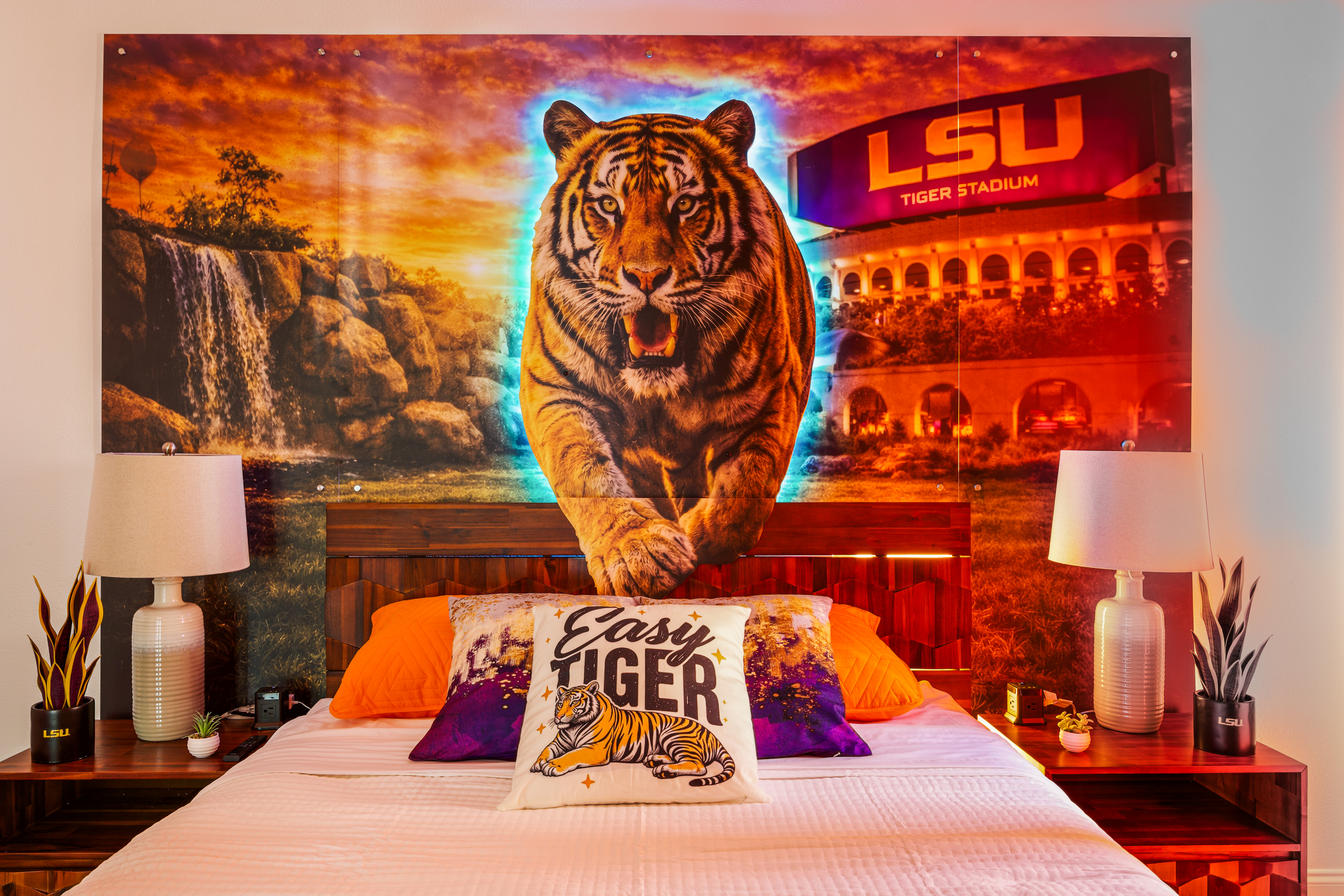 Every bedroom is uniquely LSU-inspired, giving each guest their own Tiger territory. From bold purple and gold accents to custom details that celebrate Baton Rouge spirit, this home fully immerses you to say Geaux Tigers!
