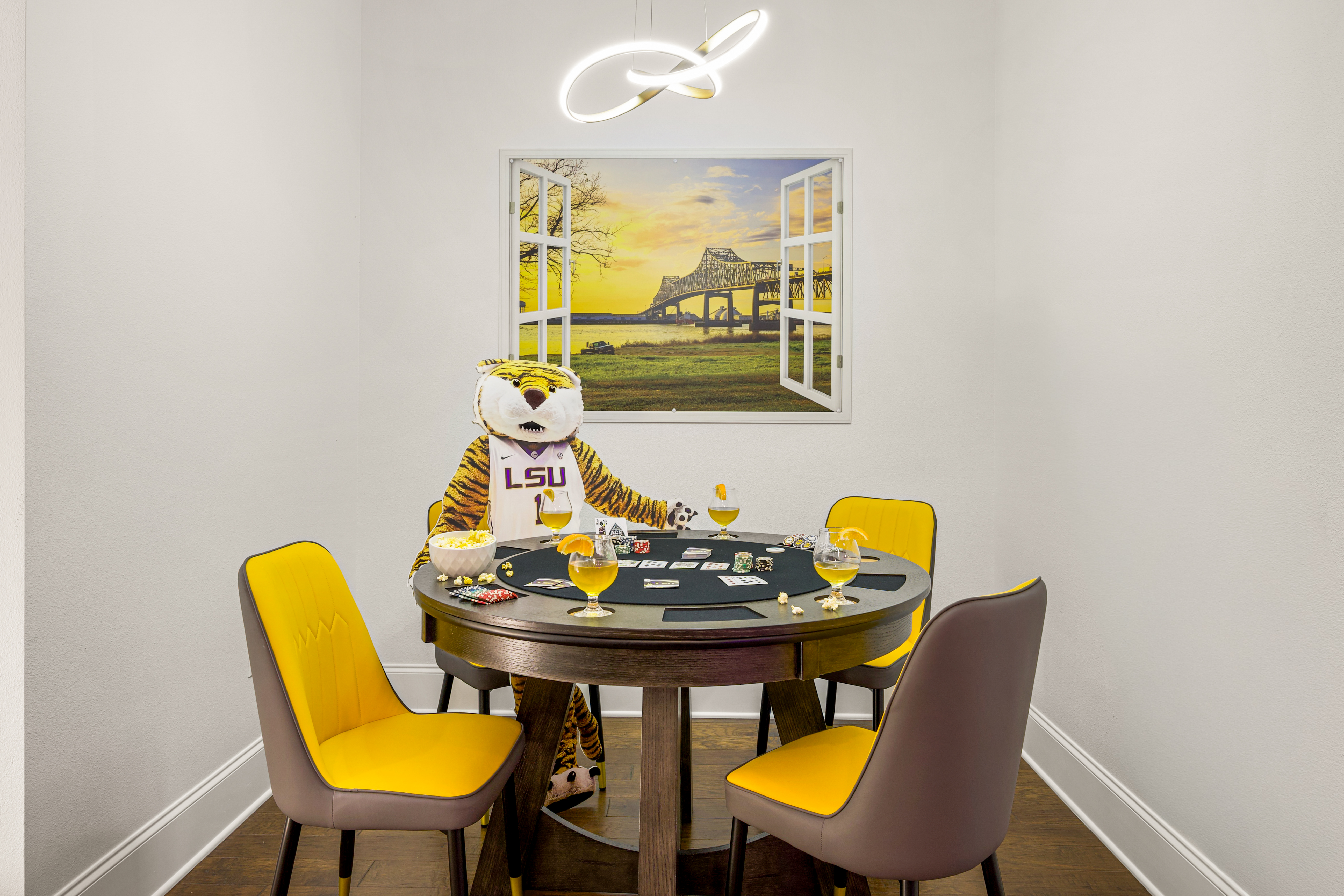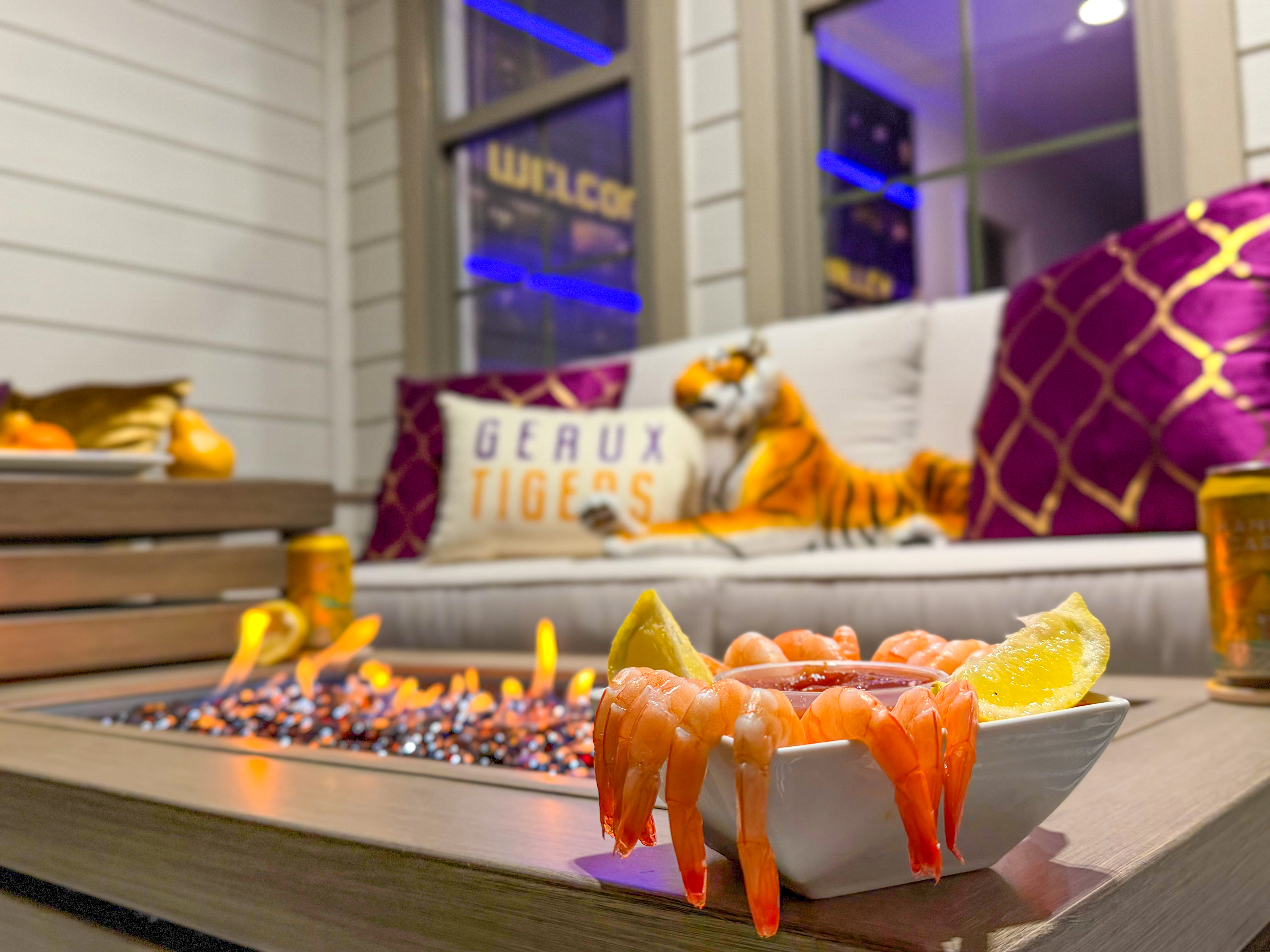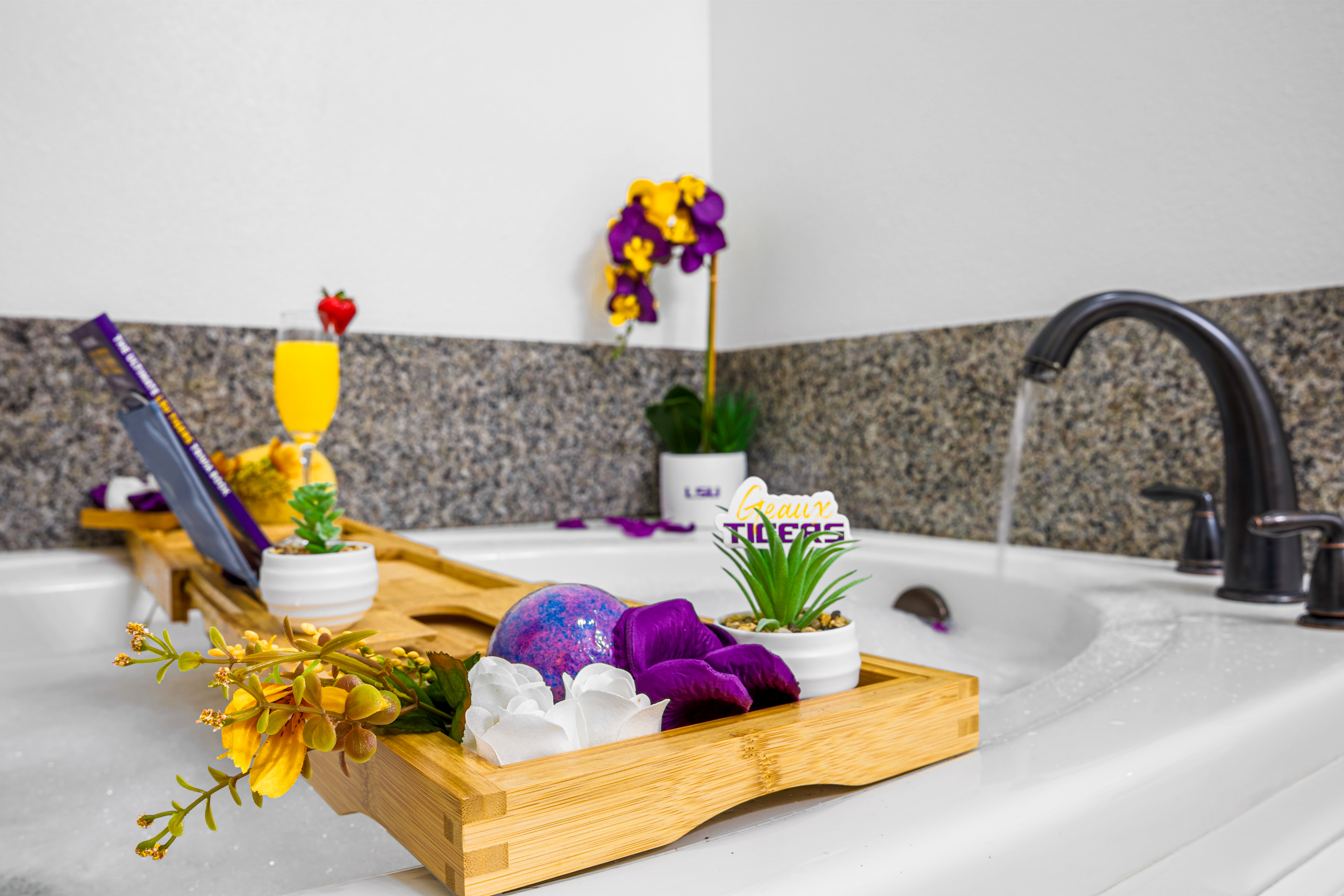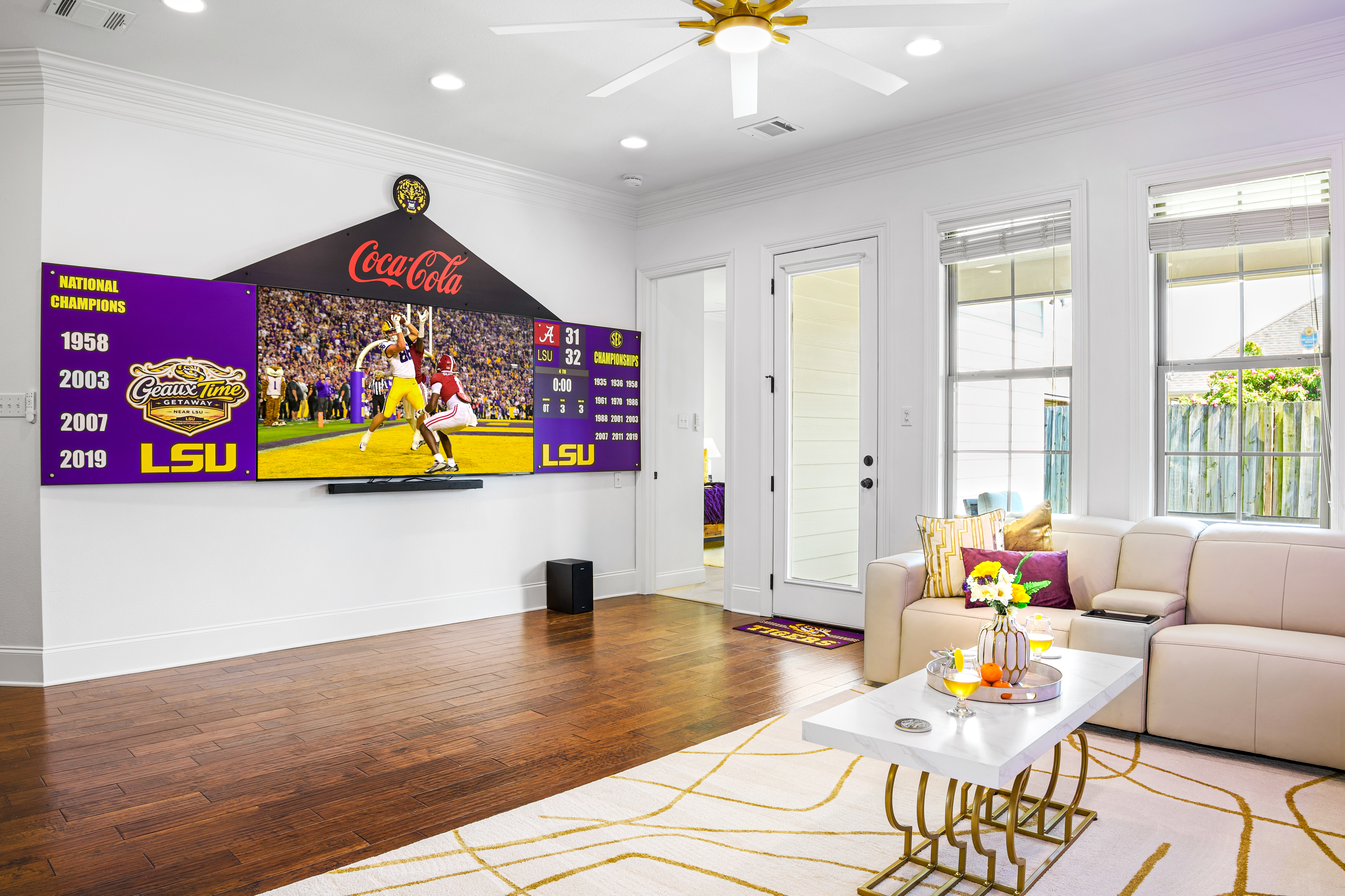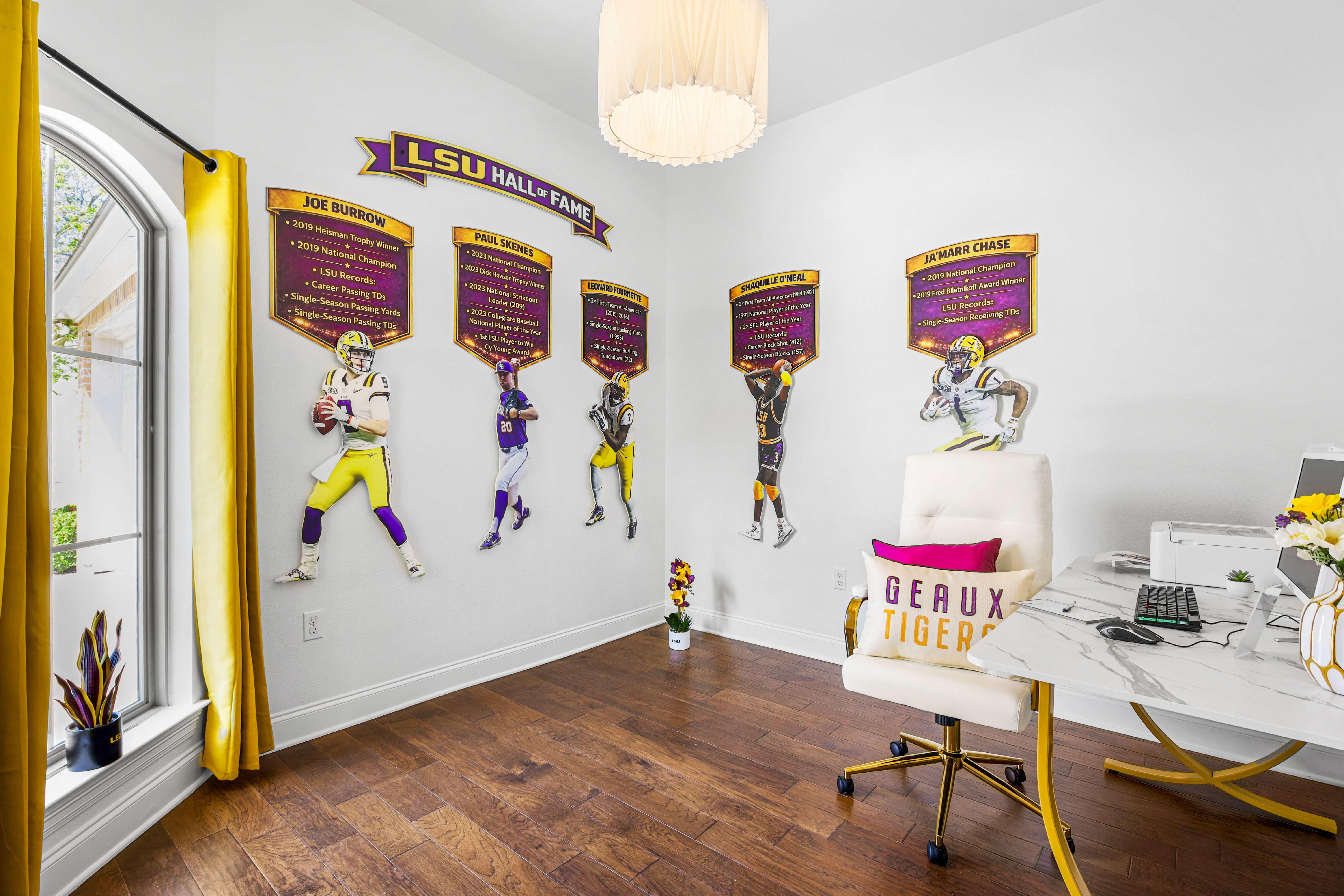 Every bedroom is uniquely LSU-inspired, giving each guest their own Tiger territory. From bold purple and gold accents to custom details that celebrate Baton Rouge spirit, this home fully immerses you to say Geaux Tigers!
